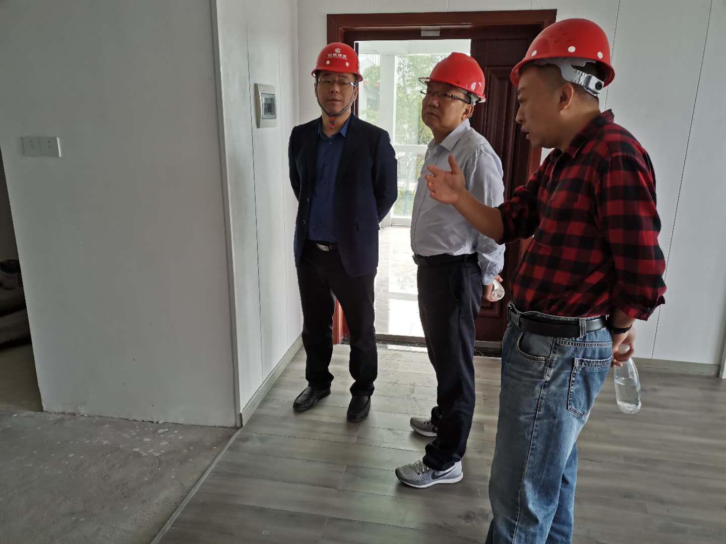 下圖為上饒市住房和城鄉(xiāng)建設(shè)局副局長詹遠(yuǎn)耀一行參觀鋼結(jié)構(gòu)樣板房