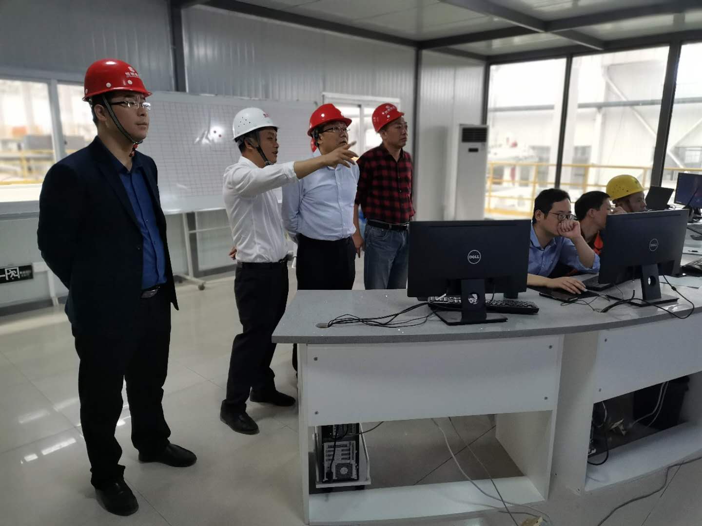 下圖為住建局領(lǐng)導(dǎo)一行在鋼構(gòu)廠區(qū)調(diào)研