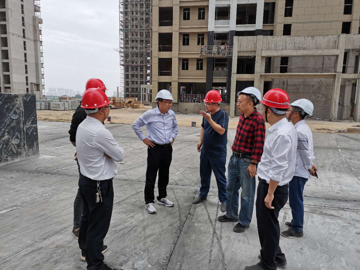 下圖為住建局領(lǐng)導(dǎo)在壹號院施工現(xiàn)場調(diào)研: