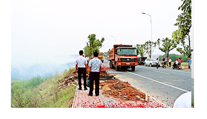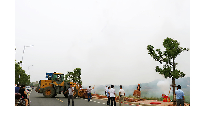 開(kāi)工儀式結(jié)束后,施工工地上鞭炮齊鳴,煙花飛舞,煙霧繚繞,幾臺(tái)大型挖掘機(jī)械在煙霧中,隆隆的馬達(dá)聲,震耳欲聾,場(chǎng)面熱烈而又震撼。